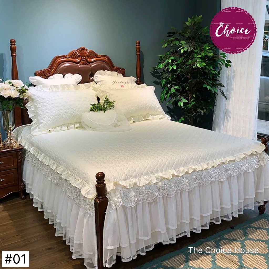 Hence we let our fabrics speak for itself. (a) 1 alas tilam (bottom side). We would like to think that no one knows textiles better than we do. (b) 1 cadar tilam bermanik dan kilat (top side). Bangkitkan lagi 'mood' raja sehari dengan menukar kepada cadar lace untuk bilik.